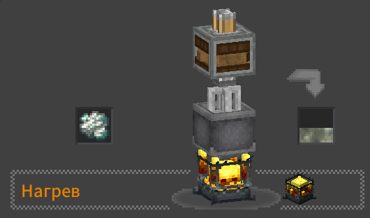 Теперь Вам необходимо в Смешивателе с нагревом переплавить определённый Рудный фрагмент в жидкий металл.